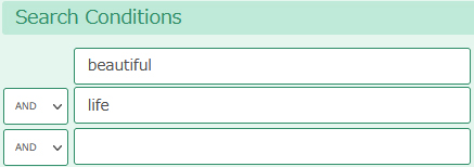 When search terms are typed like the above-mentioned example, only " beautiful life " that completely match the searched terms is searched.