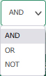 When "NOT" is selected, materials including the second word are excluded though materials including the first word are searched.