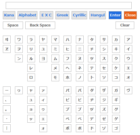 ✽ kanji・hiragana・katakana・the Roman alphabet・full-width Cyrillic alphabet・full-width Greek alphabet