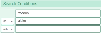 When search terms are typed to two or more items and "AND" is selected, materials that agree with both terms are searched.